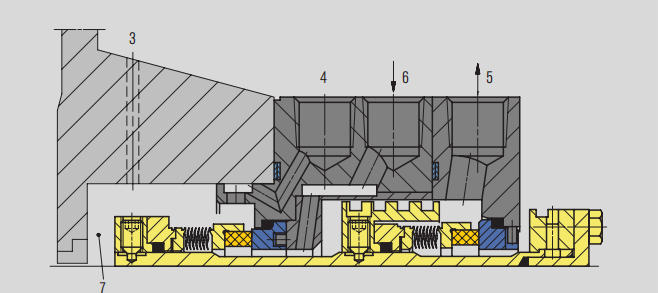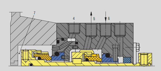 1. पंप के उच्च दबाव क्षेत्र से (पंप डिस्चार्ज या पंप डिस्चार्ज पाइपलाइन) 3.फ्लशिंग पोर्ट (एफ) 4.कूलर (क्यू) 5.ड्रेन पोर्ट (डी) 6.सील कक्ष