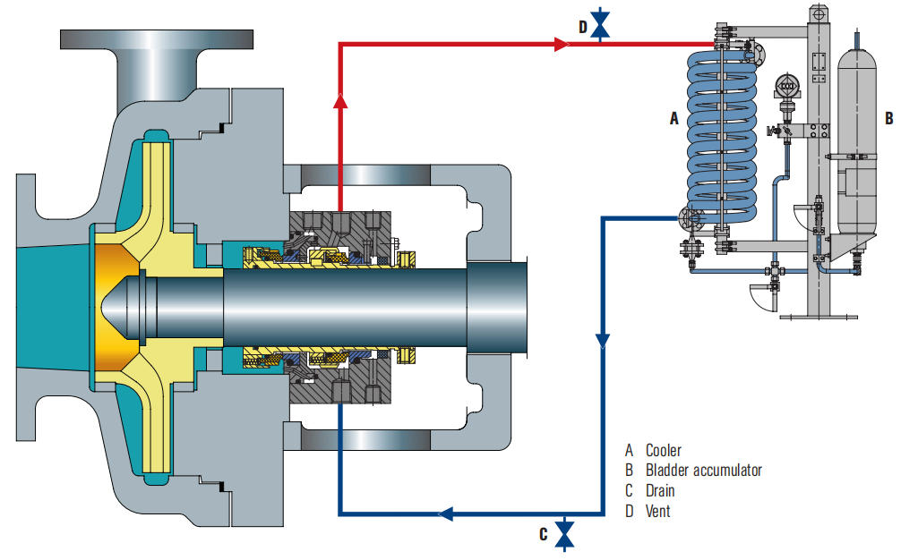 फ्लशिंग द्रव की प्रवाह दर यांत्रिक सील कक्ष से गर्मी निकालने के लिए पर्याप्त होनी चाहिए।